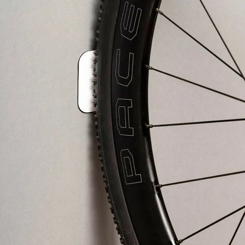 Wenn du dein Bike mit den Clug- und Clug Pro-Halterungen von Hornit aufbewahrst, ruht es platzsparend senkrecht an der Wand. Damit das Hinterrad keine unansehnlichen Abdrücke hinterlässt, gibt es das Mud Pad in zwei Größen. Dessen glatte weiße Oberfläche ist abwischbar und lässt sich somit kinderleicht reinigen.