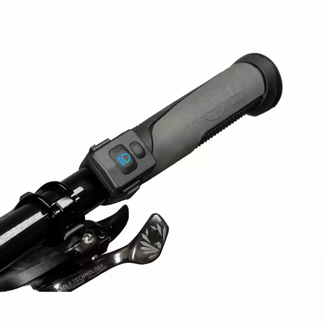 Die mitgelieferte Bluetooth-Fernbedienung könnt ihr bequem am Lenker befestigen – die ideale Position, um die Leuchtfunktionen zu steuern. Über die Fernbedienung lässt sich die Leuchte an- bzw. ausschalten und zwischen Abblendlicht und Fernlicht wechseln. Sie verfügt über zwei Taster. Der große Taster mit Scheinwerfersymbol dient zur Aktivierung des Fernlichts bei Dunkelheit, der kleine Taster zum Dimmen des Abblendlichts.