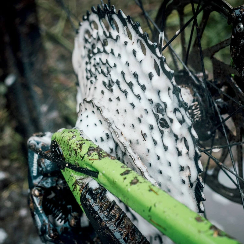 Den Antrieb mit Foaming Drivetrain Degreaser großzügig einschäumen, zwei Minuten einwirken lassen und anschließend mit Wasser abspritzen.