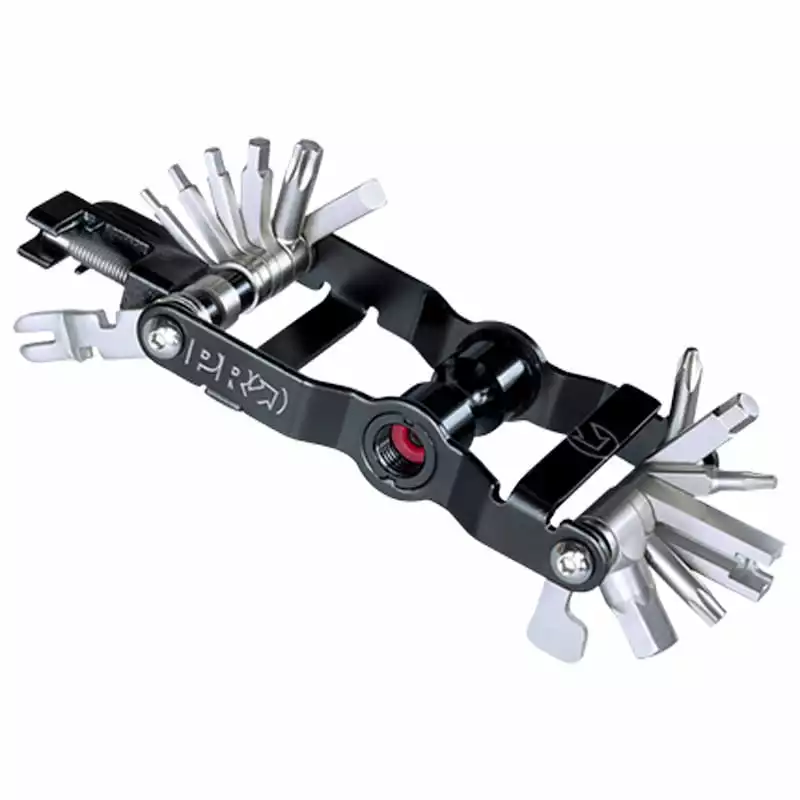 Mit diesem vielseitigen Minitool bist du auf Notreparaturen unterwegs vorbereitet. Neben den Klassikern Innensechskant, Schraubendrehern, Kettennieter und Bremsentools ist das CO2-Inflatorventil in der Mitte eine innovative Funktion, die bei den meisten vergleichbaren Tools fehlt. Auch an elektronische Komponenten ist gedacht: mit dem Steckerwerkzeug können Shimano Di2-Kabel und STePS leichter verbunden werden.