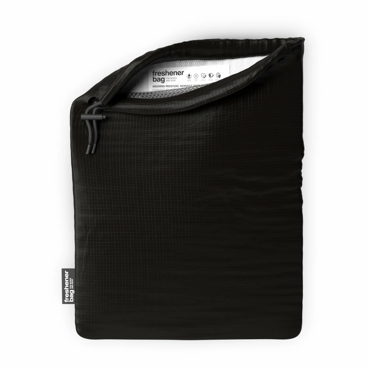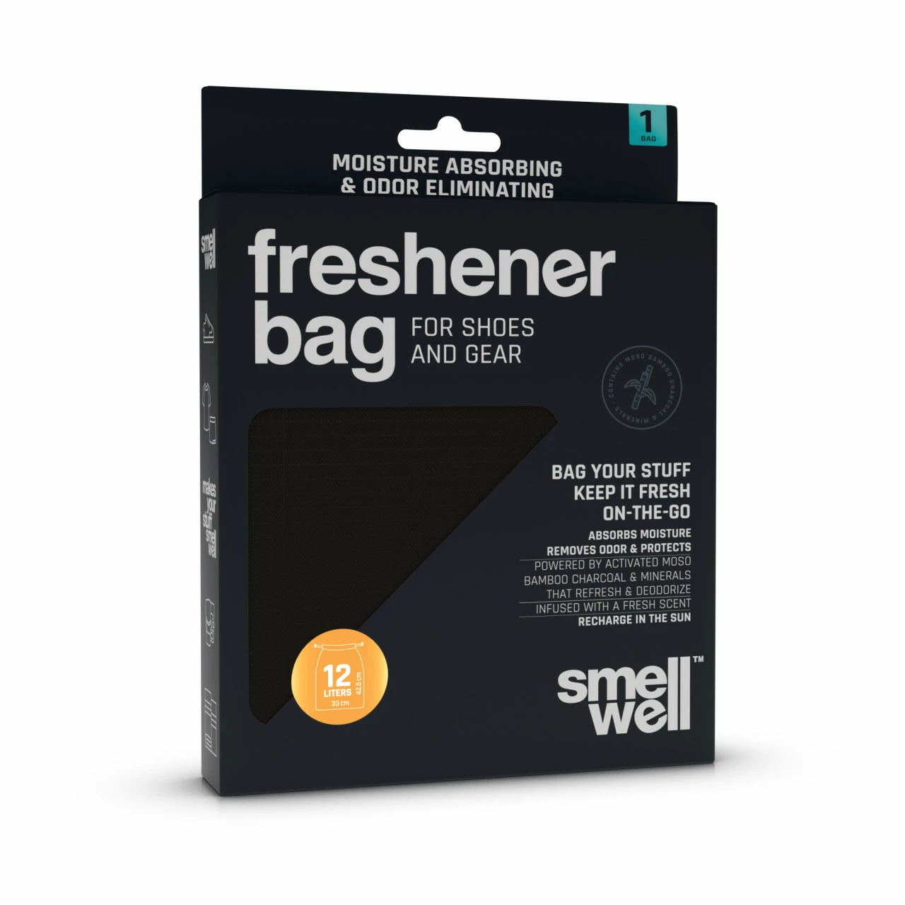 Der Freshener Bag verfügt über eine SmellWell™ Membran, die mikroporöse Aktivkohle aus Moso-Bambus enthält. Außerdem sind natürliche Mineralien und Salze in dem Anti-Geruch-Turnbeutel verarbeitet. Diese Kombination absorbiert Feuchtigkeit und desodoriert zwei Jahre lang – und das ganz ohne Schadstoffe und Biozide! Ungeöffnete Verpackungen behalten die volle Wirkungskraft unbegrenzt.
